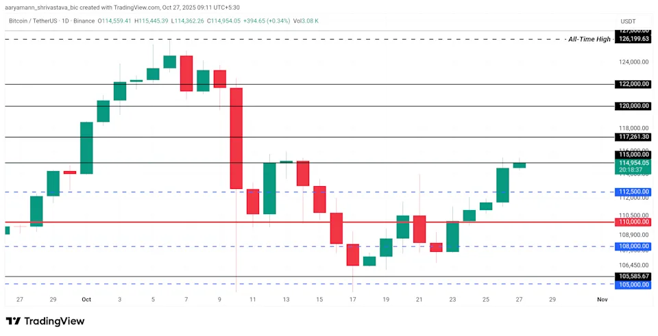 • In late October 2025, the total cryptocurrency market cap climbed as Bitcoin surged past $115,000 and Ethereum reclaimed key levels. a16z crypto+3Finance Magnates+3CoinCentral+3